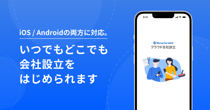 『マネーフォワード クラウド会社設立』は、iOS / Androidの両方に対応しています。ご自身が普段使われているデバイスから誰でもかんたんに会社設立の準備を始めることができます。