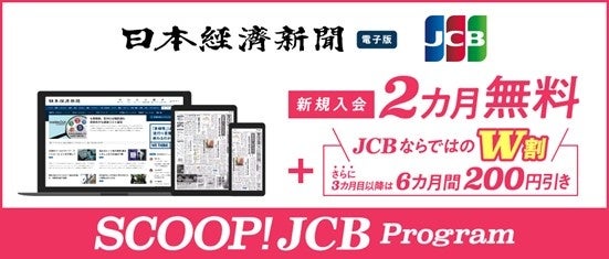 JCB、日経電子版の新規利用者様向けに本日より利用料2ヶ月無料のキャンペーンを開始