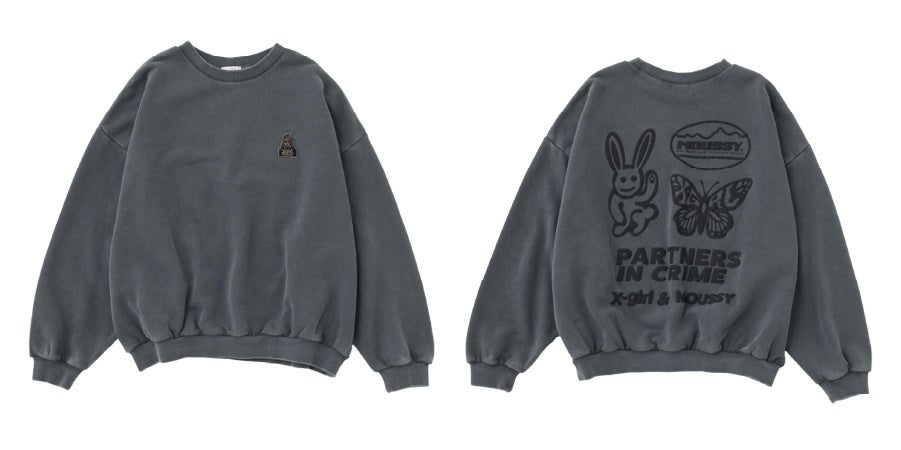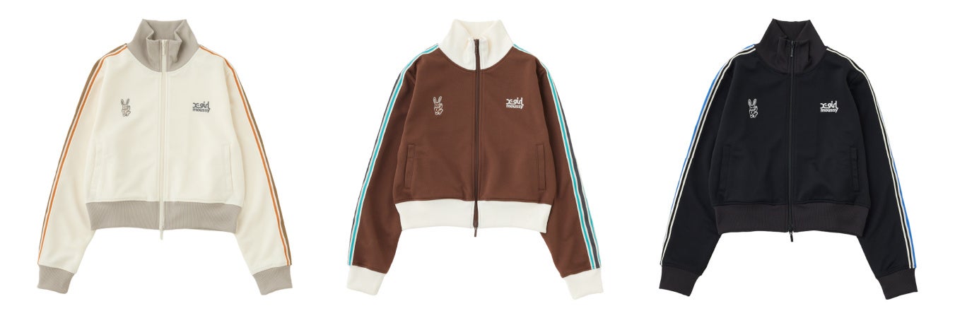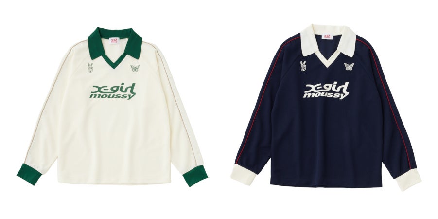 過去2回のコラボレーションを経て、第三弾となる今回のアイテムは、X-girlとMOUSSYのコラボレーションではお馴染みとなったバニーに加え、初期のMOUSSYロゴを使用したりと、MOUSSYが生まれた2000年代のムードを取り入れたラインアップで展開。トラックジャケット、ゲームシャツなどのスポーティなアイテムやラインストーンを使用したトップスに、MOUSSYらしいヴィンテージやミリタリーテイストのアイテムも加わったコレクションとなりました。