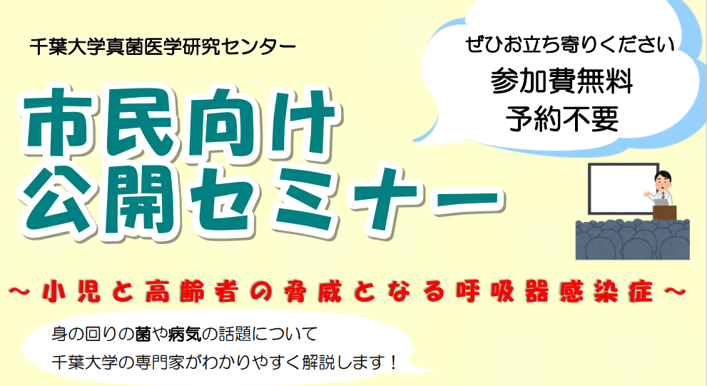 千葉大学真菌医学研究センター(センター長 笹川千尋、中央区亥鼻1-8-1 千葉大学亥鼻キャンパス内)では、今年度3回目の市民向け公開セミナーを開催します。