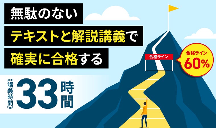 FP3級の基礎論点をきっちりと復習した上で、FP2級独自の複雑で細かい論点のなかからよく試験に出題される論点を厳選して解説。他校では80時間以上の学習時間を要するところ、最短約33時間と短い時間に凝縮しました。合格点である「6割」を確実に取るための、無駄のないテキストと解説講義をご提供します。