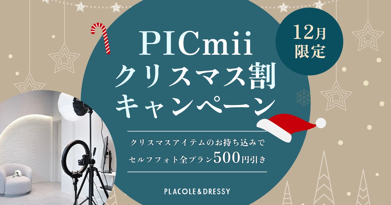 セルフ写真館『PICmii』PLACOLE&DRESSY プロデュースの横浜店・名古屋店にて 12月限定『クリスマス割』スタート!