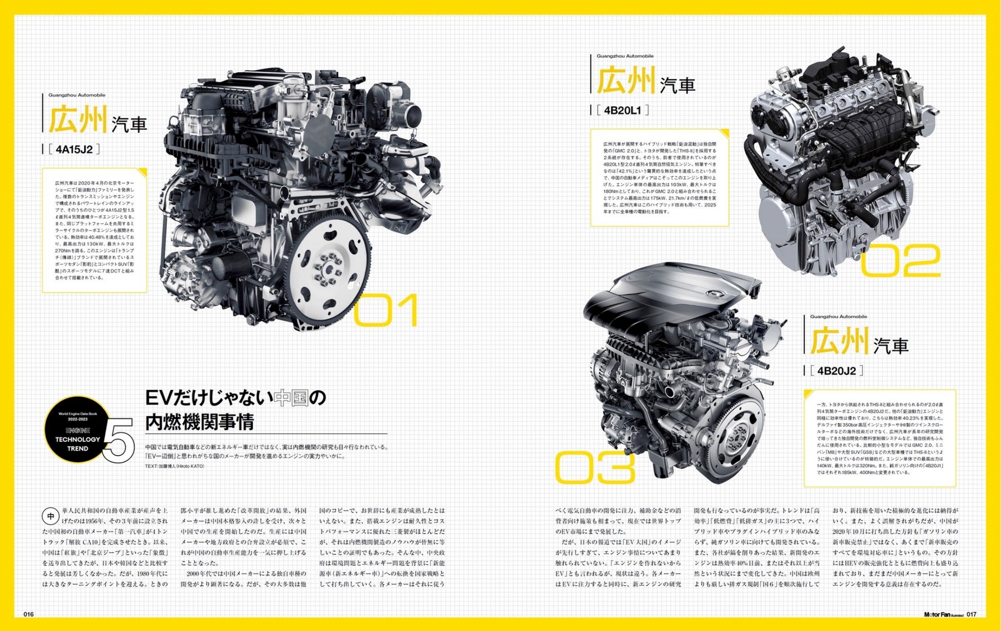 もちろん、エンジンデータブックですからエンジンについてもトピックを集めました。「モーターが求められている現在」について、果たして自動車のパワートレーンはどのように進んでいくべきなのか。規制の視点からはどうか(Topic 1)、合成/代替燃料の視点からはいかがか(Topic 2&3)検討しています。さらには伸長著しい中国のエンジンについて、彼の地の開発現場動向と最新エンジンの仕立てについて紹介しました(Topic 4&5)。