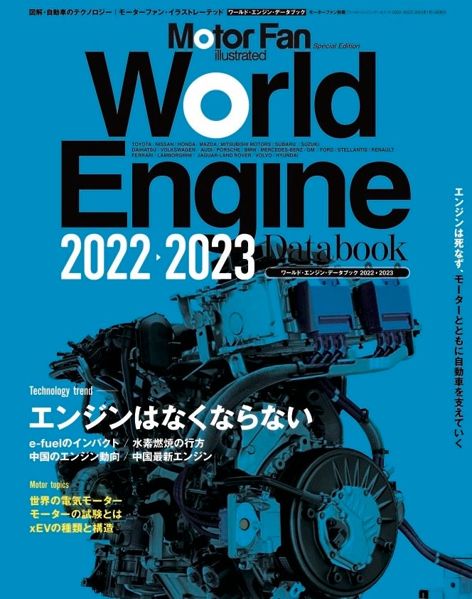 世界の自動車メーカー各社の現行モデルに使われているエンジンを分類・解説した『ワールド・エンジン・データブック2022-2023』