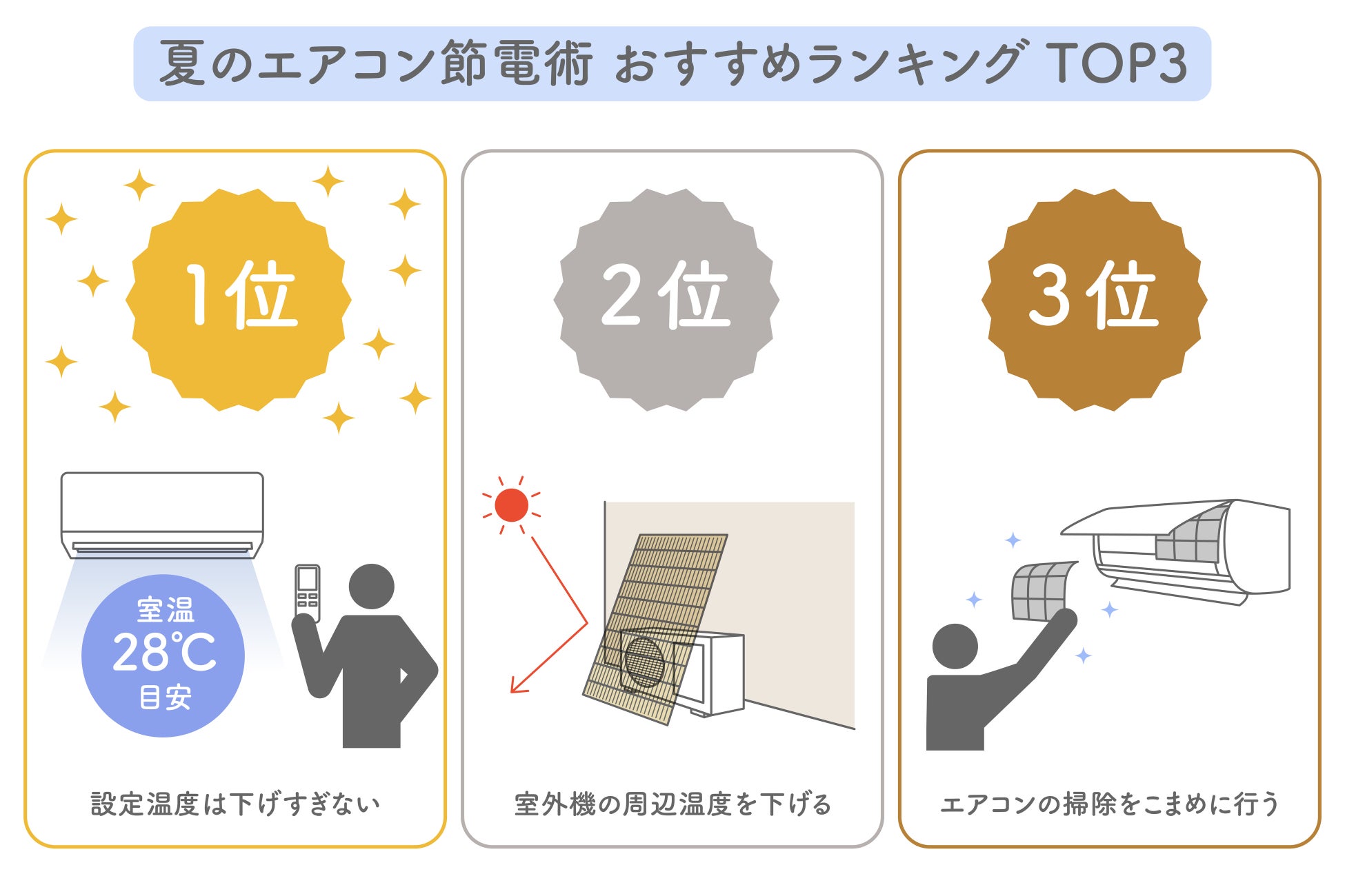 続いて、夏のエアコン節電術 おすすめランキングTOP3に、下記の3つの節電術を加えた夏のエアコン節電術6選をご紹介します。