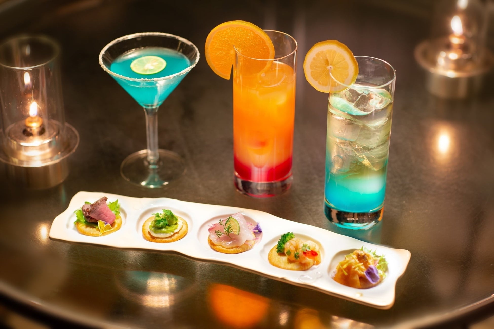 窓一面に広がるきらめく海を眺めながら、ゆったり寛げる絶景カフェ。鳴門金時パフェやタルトなどのスイーツ、鳴門市を中心に6店舗展開する徳島の人気ラーメン店「堂の浦 鳴門本店」監修の【鯛の塩らぁ麺】など、ご当地メニューが楽しめます。ツキヨミテラスのムーンロードカクテルやお休み前のモクテルも好評です。