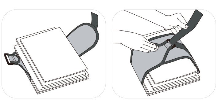 2)揃えた教科書類を動かないようストラップでしっかり留める。