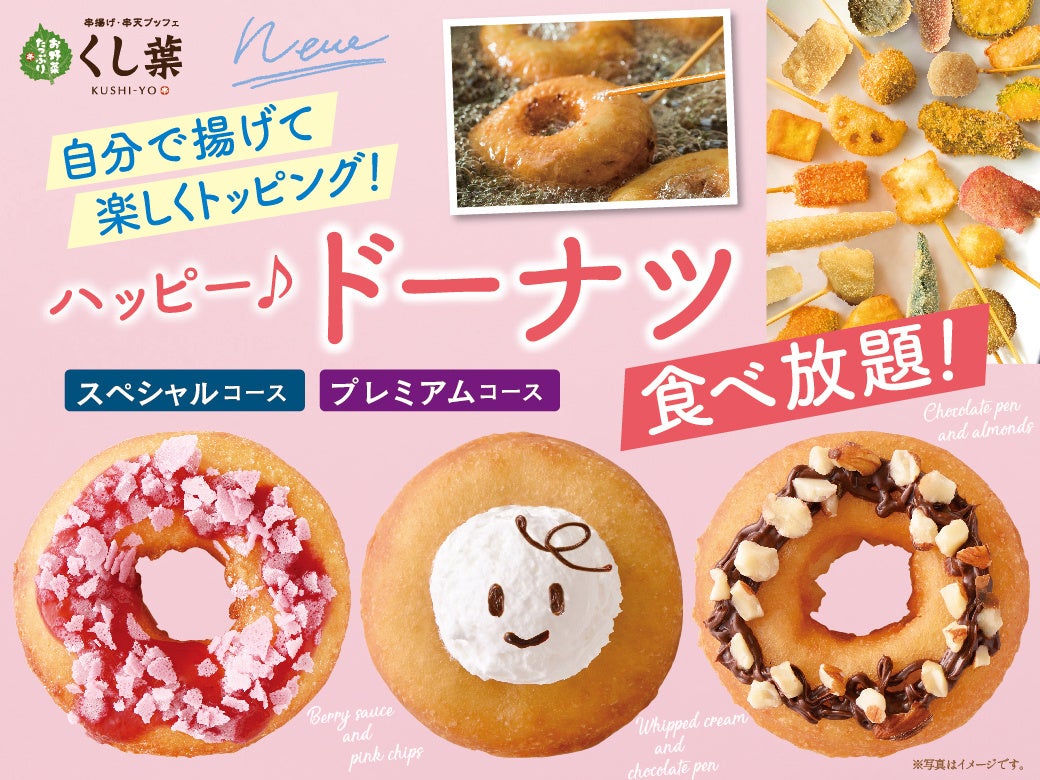 【熱々サクフワ♪出来立てドーナツ食べ放題!!】みなとみらいでバラエティー豊かな串揚げが楽しめる『串揚げ・串天ブッフェ くし葉』にて自分で揚げてアレンジできる『ドーナツ』が待望の復活!!