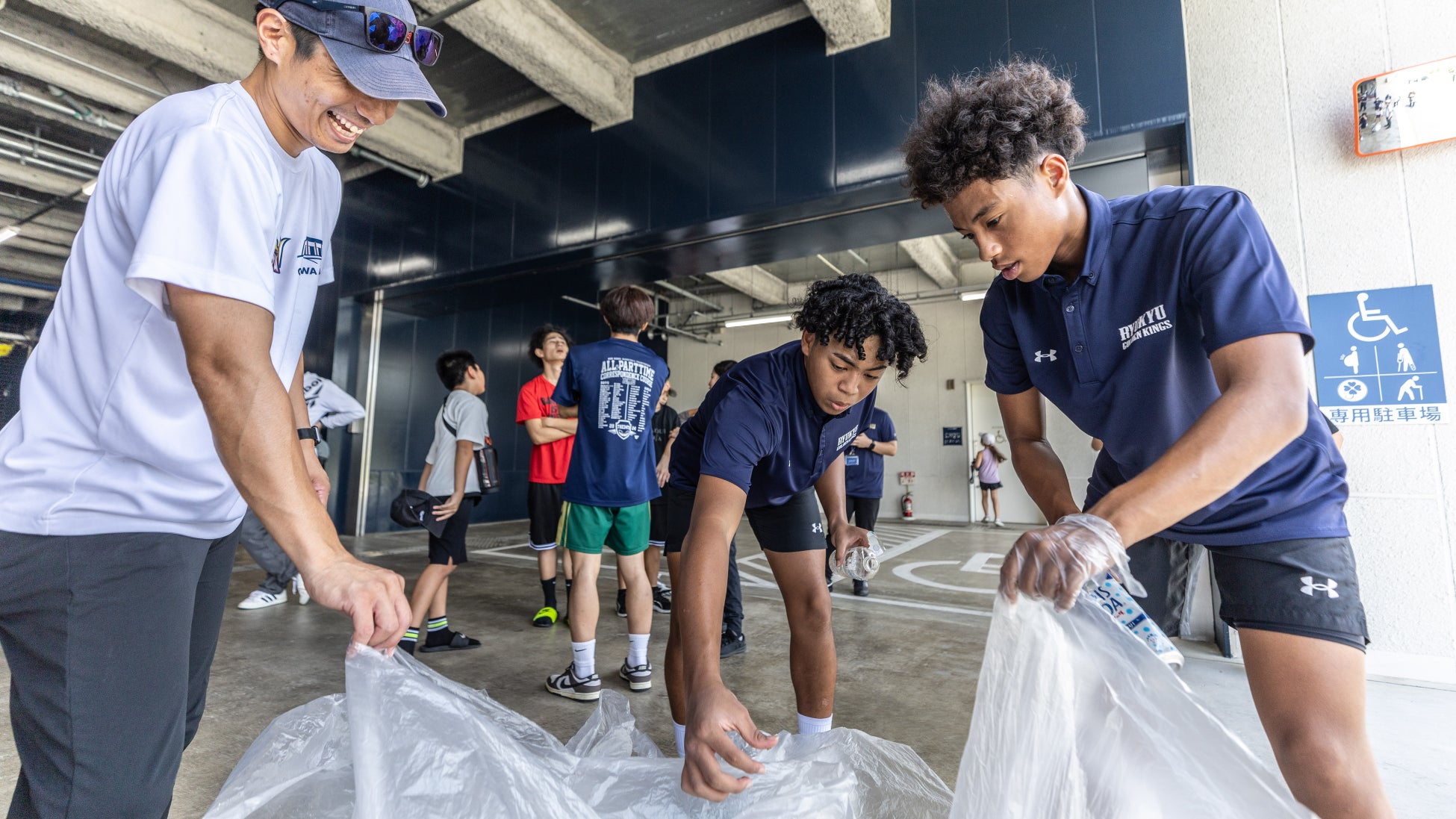 昨年に引き続き2回目の参加となった今回の「やまっちクリーンデー」も、ホーム開幕戦(10月5日(土)、6日(日) 三遠ネオフェニックス戦)に向けて、沖縄アリーナ周辺を清掃しました。