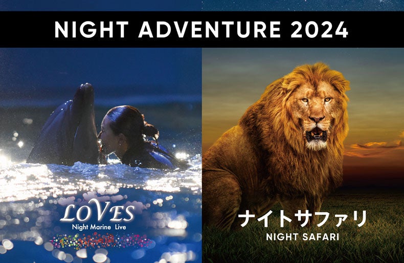 アドベンチャーワールド(和歌山県白浜町)は、2024年7月26日(金)〜8月25日(日)の期間、午後8時までの夜間特別営業『NIGHT ADVENTURE 2024』を実施いたします。また期間中にお楽しみいただける各種ナイトコンテンツのチケットを7月5日(金)より順次販売いたします。人とイルカが紡ぐ愛の物語ナイトマリンライブ「LOVES」や、動物たちが昼間とは違う動きや表情を見せる「ナイトサファリ」のほか、動物たちと間近でふれあい、飼育スタッフと直接話すことができる「ナイトふれあいパーク」など、この夏、忘れられない特別な夜の体験をご用意いたします!