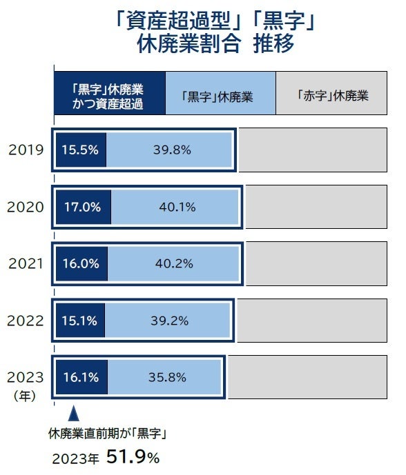 「黒字」休廃業の割合、過去最低の51.9% 「資産超過」休廃業の割合も低下