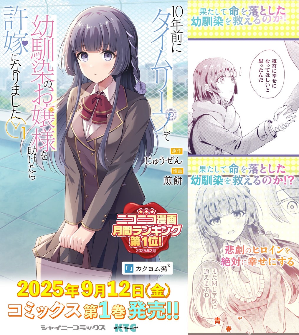ニコニコ漫画月間ランキング第1位を獲得した話題作が本日より秋葉原駅に登場!『10年前にタイムリープして幼馴染のお嬢様を助けたら許嫁になりました』