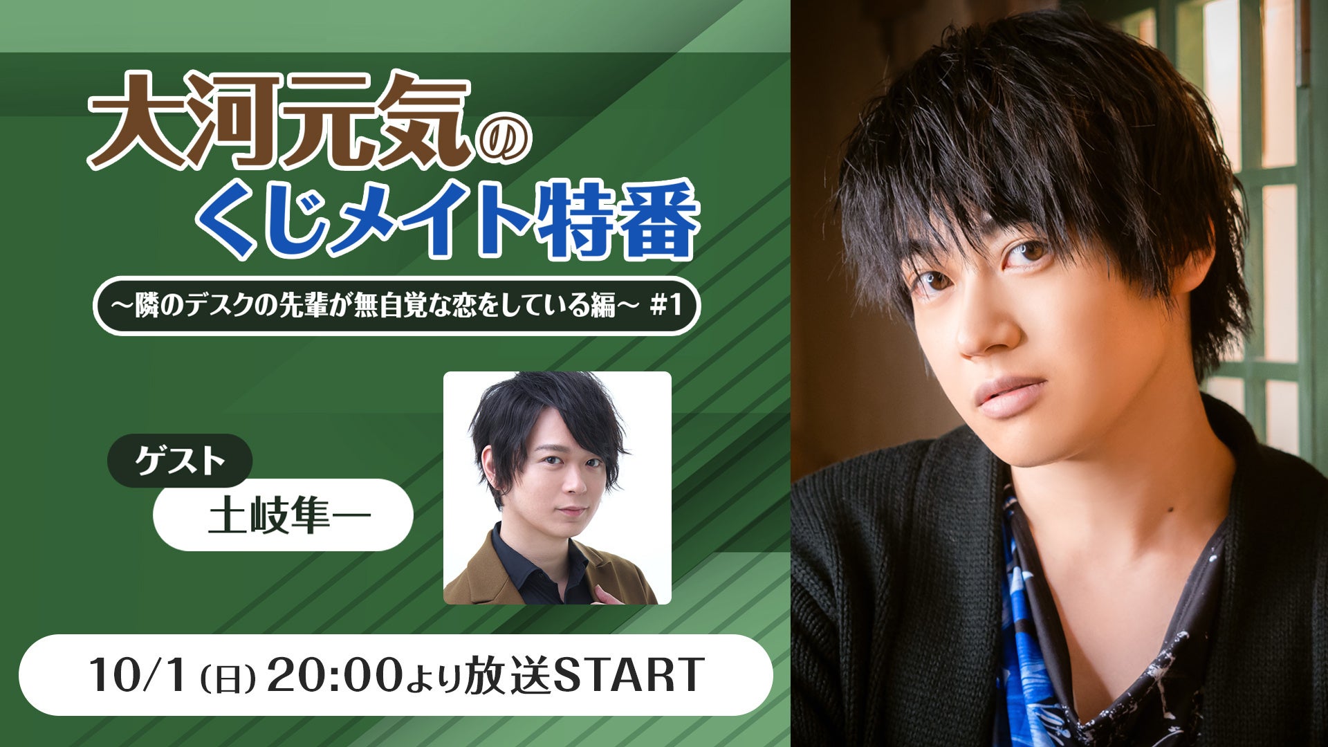 10月1日(日)放送の「大河元気のくじメイト特番~隣のデスクの先輩が無自覚な恋をしている編~ #1」は、アニメイトのオンラインくじサービス「くじメイト」において、大河元気さんのくじメイトが販売となったことを記念して行われる特別番組です。