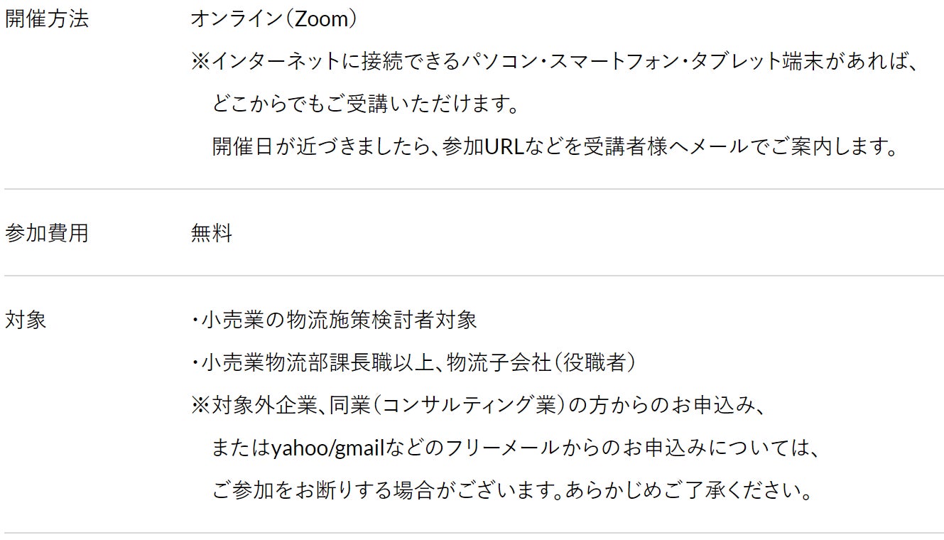 本セミナーでは上記にスポットを当てて、今後の小売業物流の在り方を提言します。