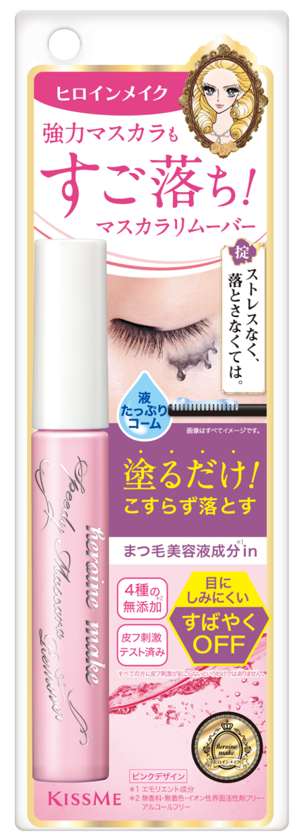 ウォータープルーフタイプのマスカラも塗るだけでこすらず落とすヒロインメイクの大人気マスカラリムーバーにピンクデザインが新登場。