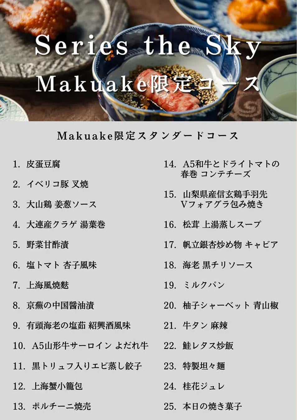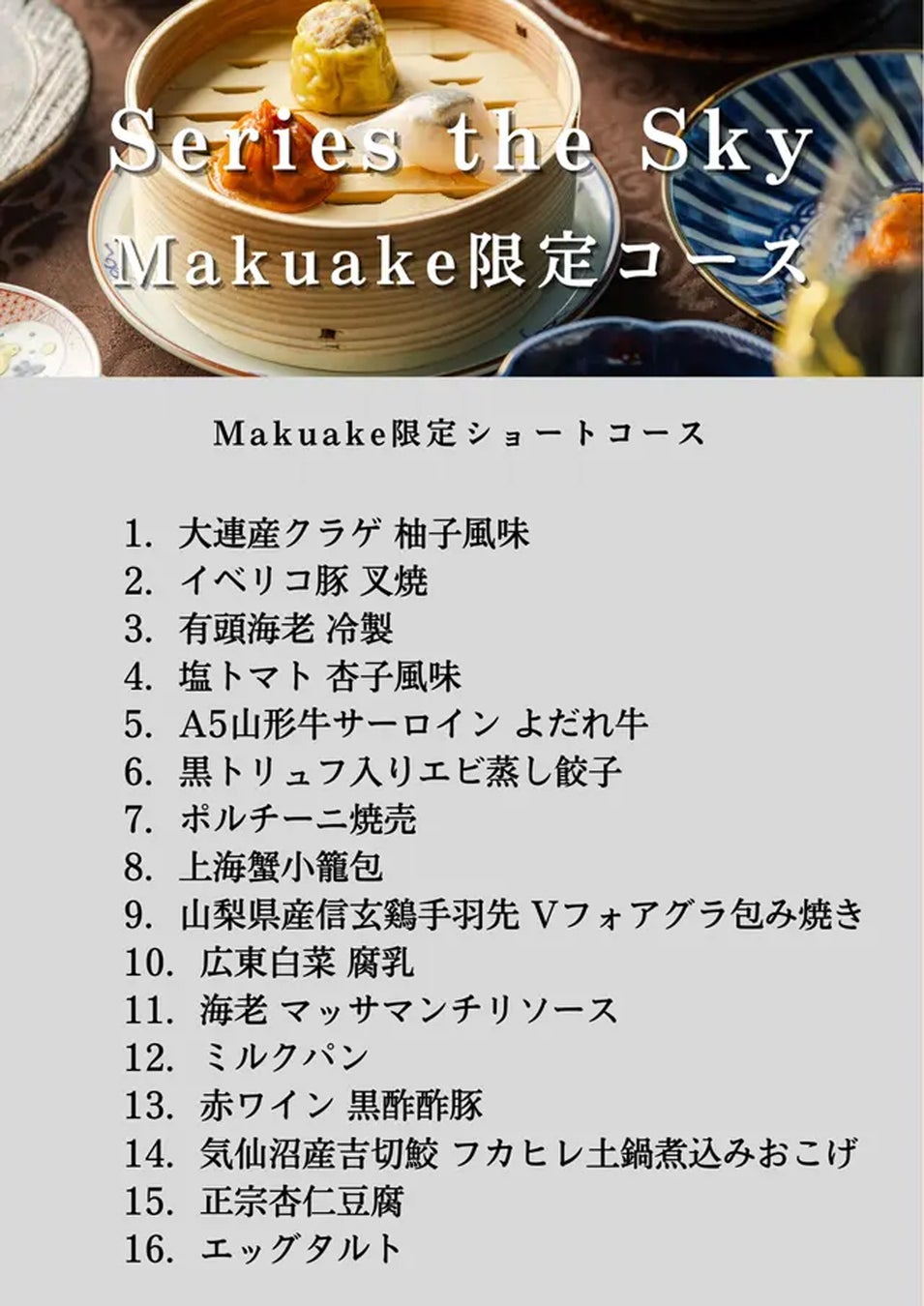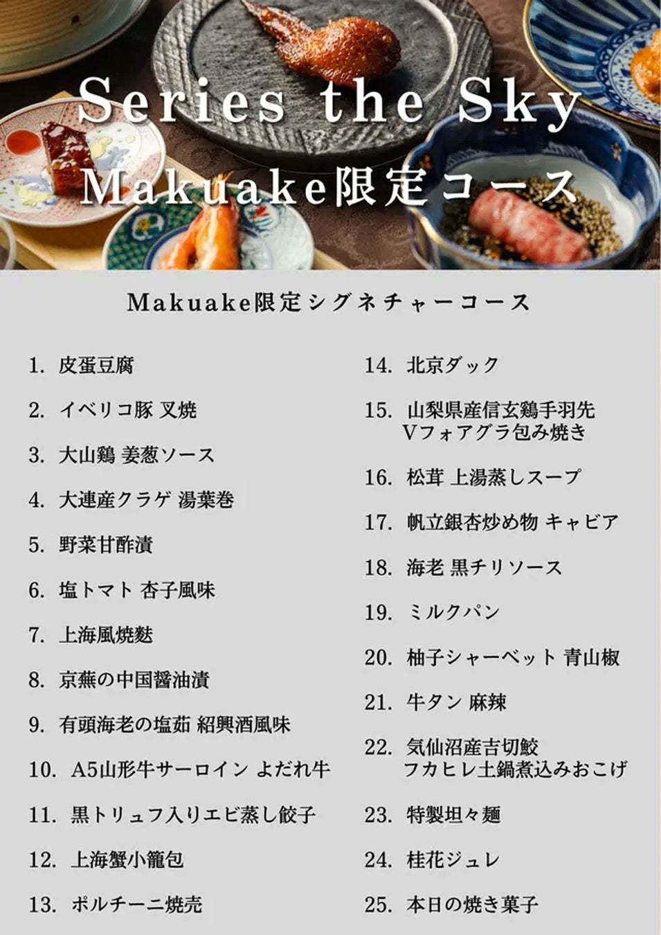 ミシュラン星獲得シェフの人気中華レストラン「Series the Sky」が「Makuake」にて特別ショートコース提供開始