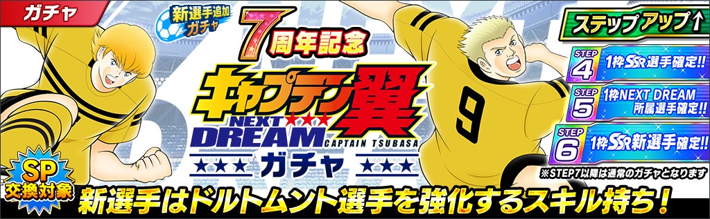 KLab株式会社(本社:東京都港区、代表取締役社長:森田英克、以下「KLab」)が提供するスマートフォン向け対戦型サッカーシミュレーションゲーム『キャプテン翼 ~たたかえドリームチーム~』では7周年記念キャンペーンを開催中です。