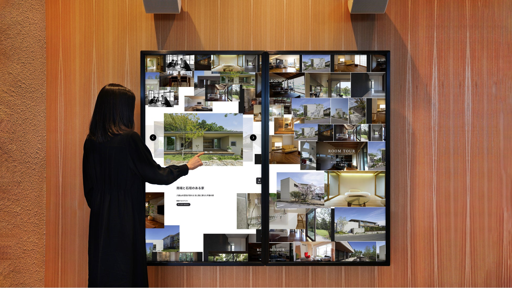 チームラボは、積水ハウスと気軽に出会える新拠点「SUMUFUMU TERRACE」の、新宿、立川、錦糸町、池袋の4拠点に、タッチパネルサイネージ「Digital Information Wall(デジタルインフォメーションウォール)」を導入。家づくりに役立つ施工例や社員邸の画像や動画を、インタラクティブに見ることができます。2021年11月から随時公開。