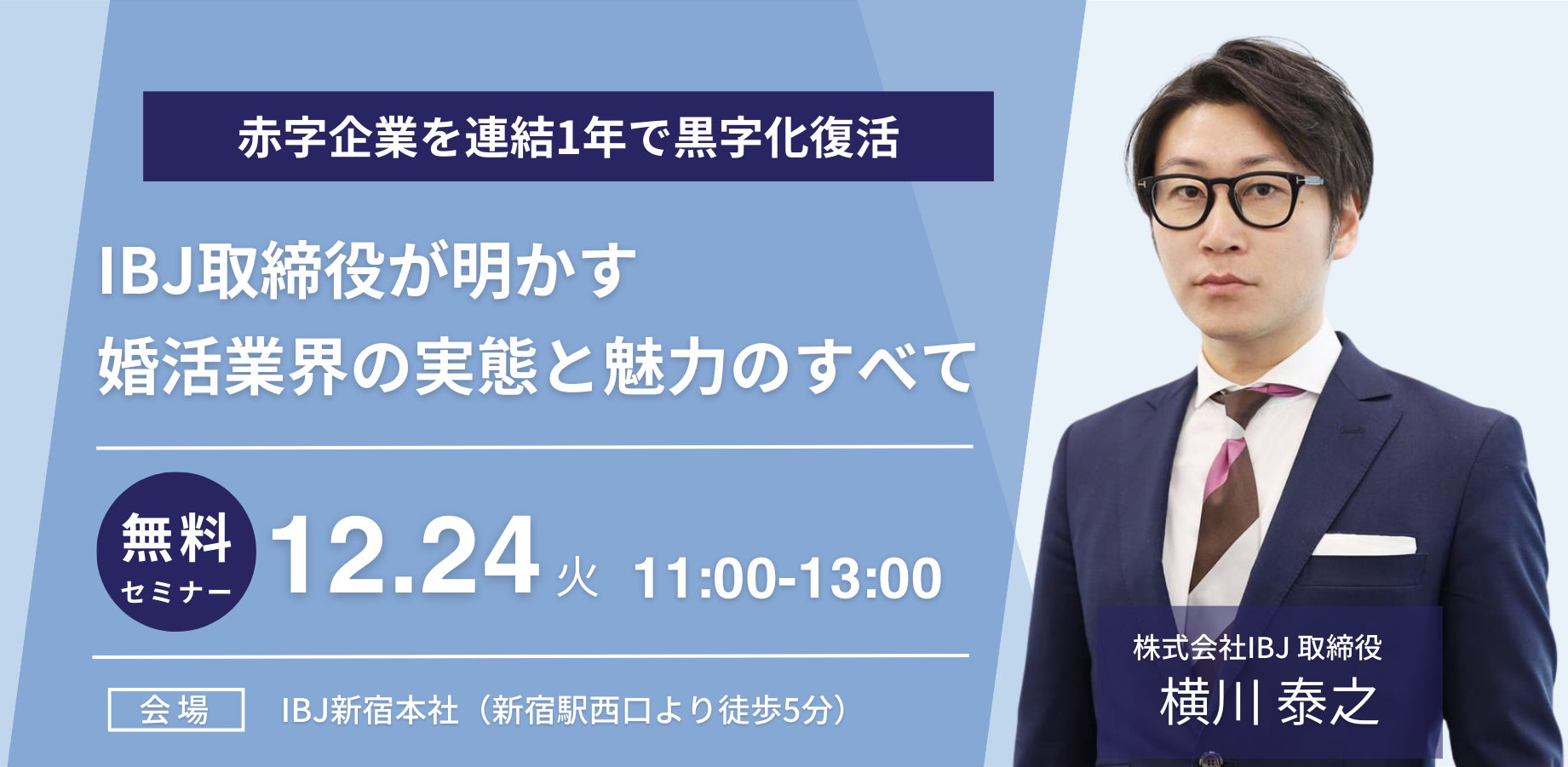 【婚活のIBJ】成功する結婚相談所運営とは⁉赤字企業を連結1年で黒字化復活させたIBJ役員が登壇する特別セミナーを開催。