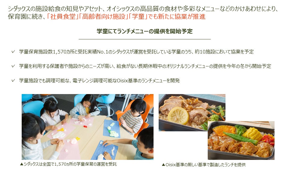 具体的には、シダックスが受託する学童において、今年の冬休みから昼食の提供を開始する予定をしております。
