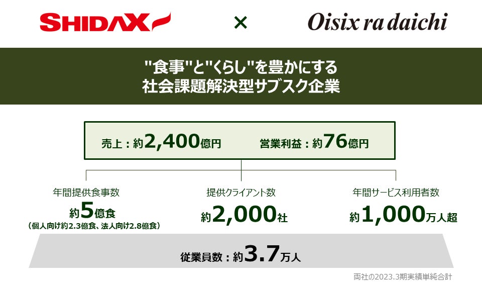 本取引を通じて、創業家、シダックス及び当社の3者が連携し、「“食事”と“くらし”を豊かにする社会課題解決型サブスクリプション企業」としてより一層、お客様へのサービスを充実させていくとともに、社会課題の解決を加速させてまいります。
