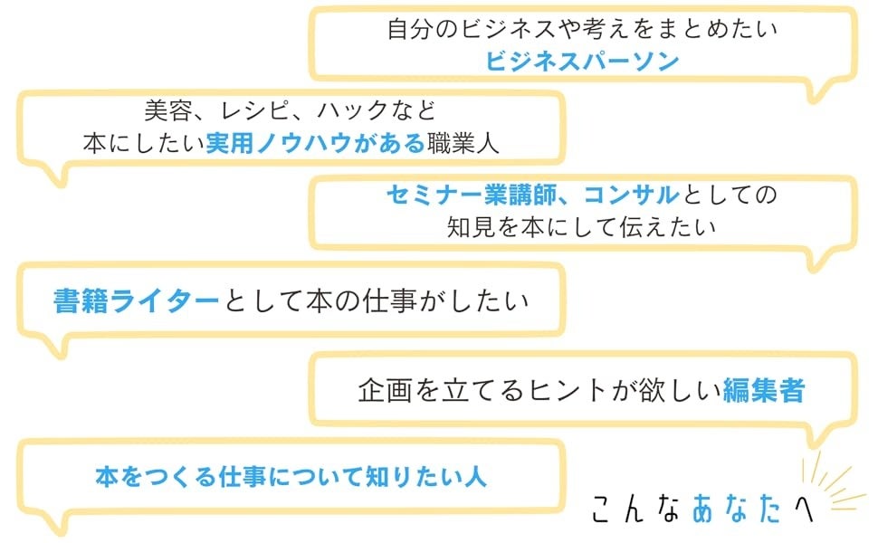 「著者」としての単著が多数あり、「書籍ライター」として経営者や専門家のビジネス書や実用書の出版に携わりヒットさせてきた人気ライターが、出版を実現するために必要なこと、お金の話、出版後の可能性までを余すことなくお伝えします。