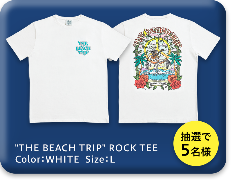 「LOVE盤」を歌って応募 "THE BEACH TRIP" ROCK TEE Color:WHITE Size:L 5名様