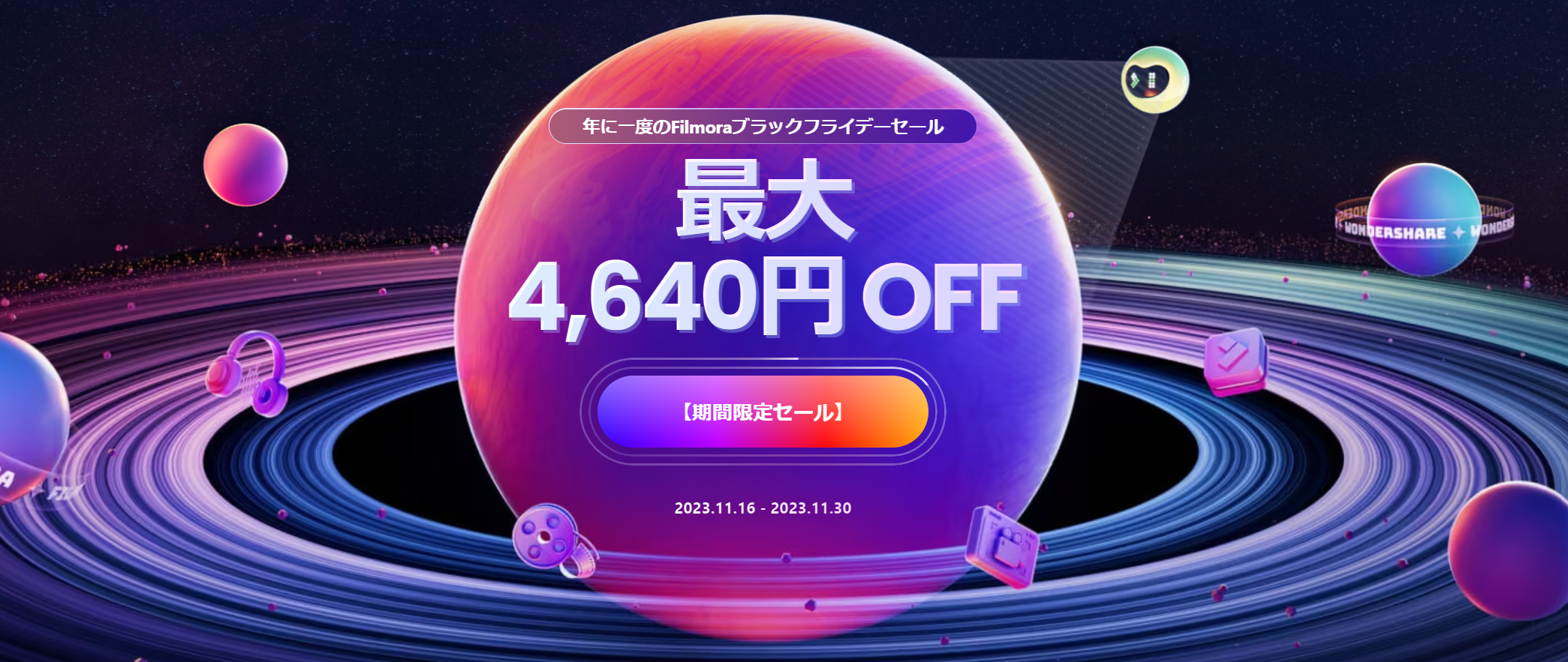 https://filmora.wondershare.jp/sales-promotion.html [ 11月30日(木)迄 ]