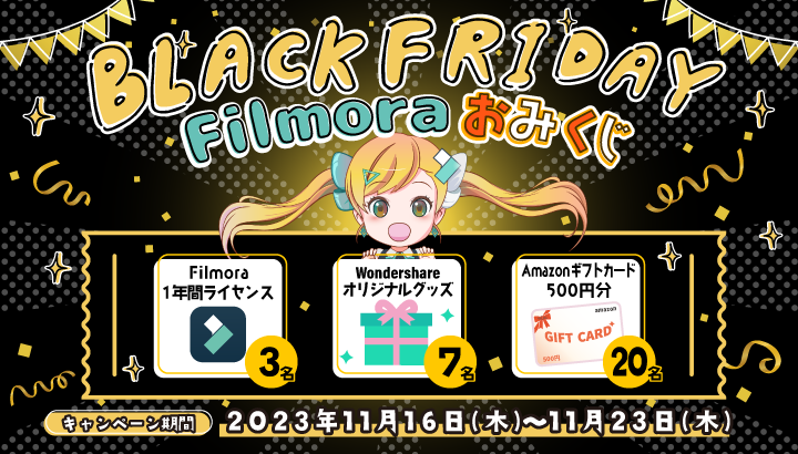 ★ 【抽選で30名様に当たる】ブラックフライデー Filmoraおみくじキャンペーン実施中 ★