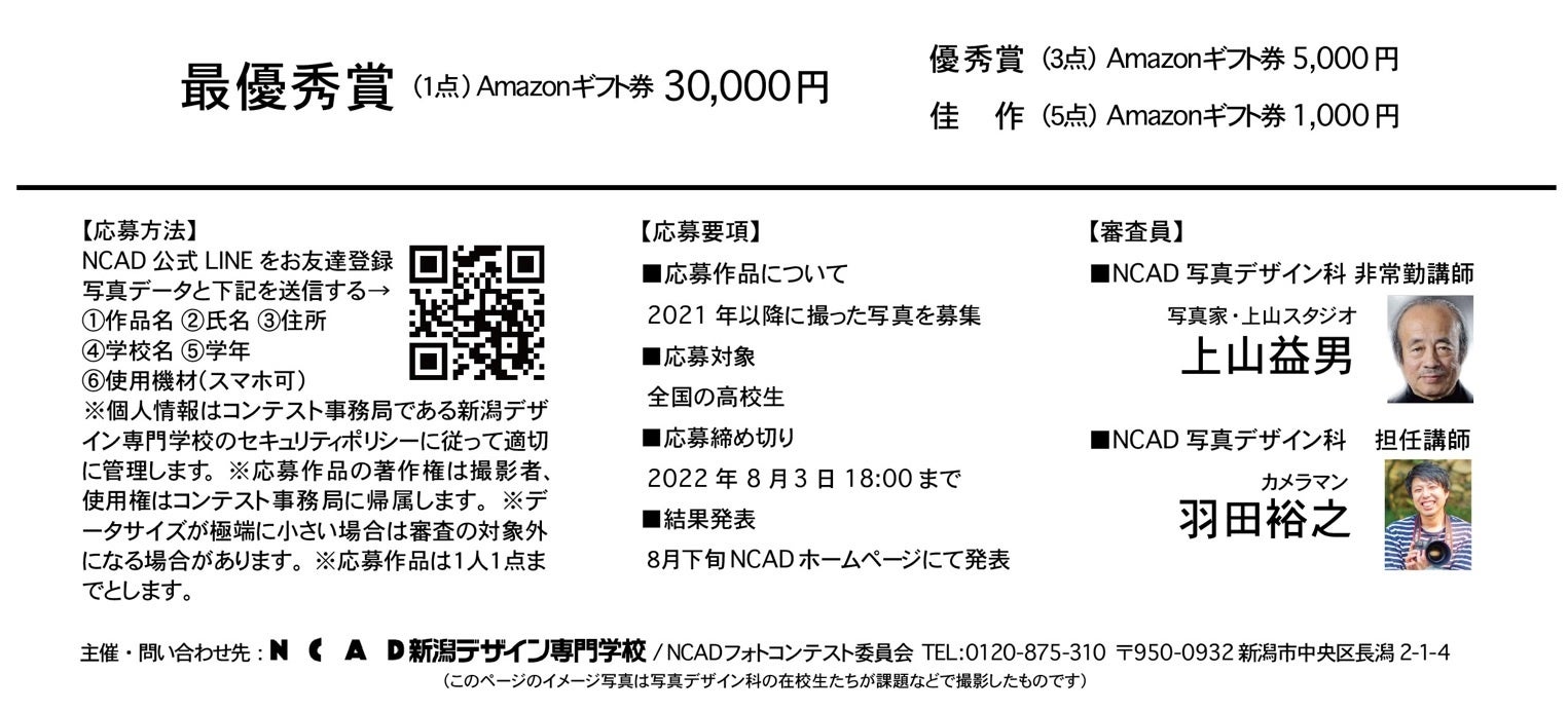 NSGグループの新潟デザイン専門学校では、高校生のデザイン文化向上とデザイン活動・写真撮影活動を行う学生を応援すべく、「NCAD高校生フォトコンテスト2022」を開催いたします。