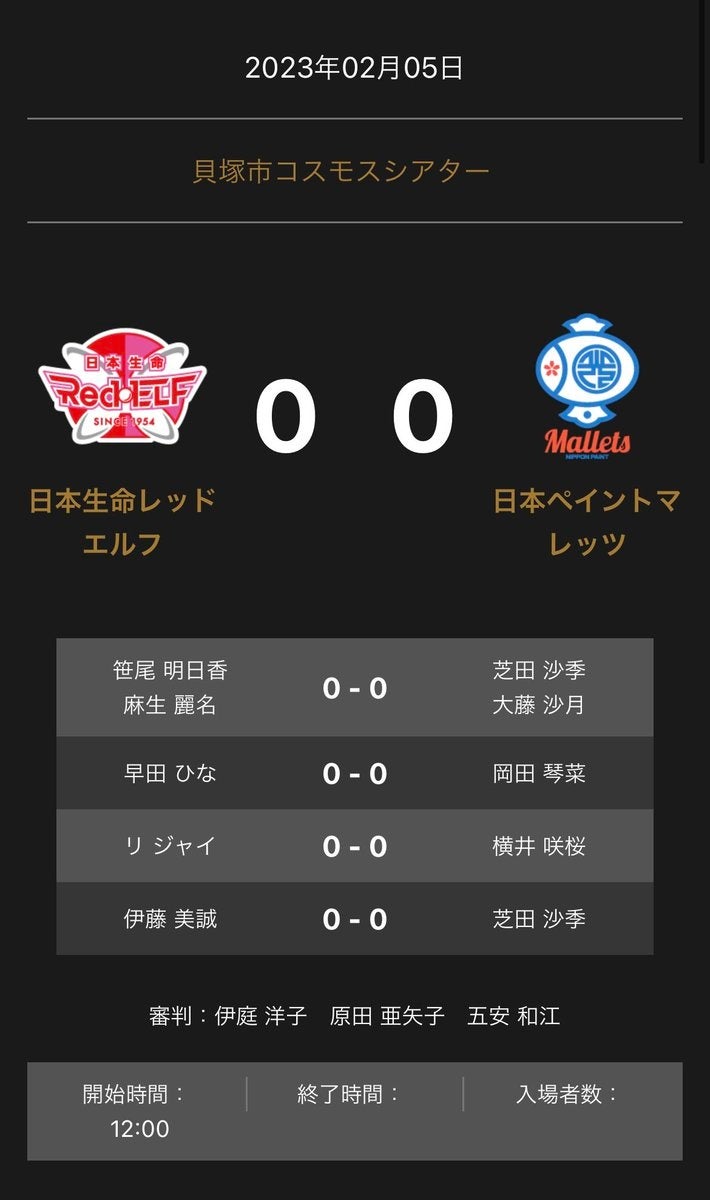 2月5日(日) 12:00試合開始 日本生命レッドエルフ vs 日本ペイントマレッツ 対戦オーダー発表