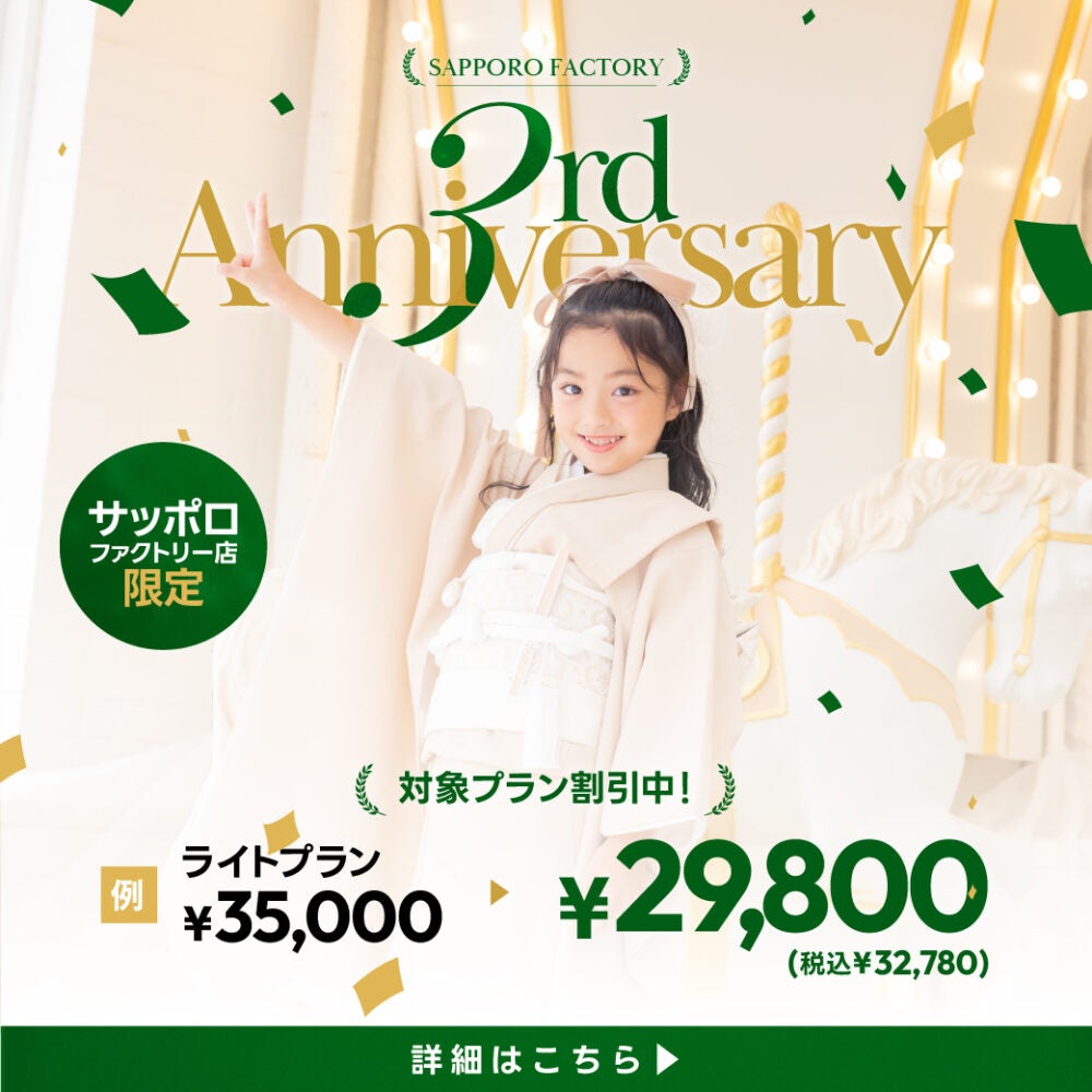 北海道札幌市に店舗を構える写真工房ぱれっとサッポロファクトリー店(本社/有限会社三景スタジオ)。2021年に移転リニューアルオープンをしてから3周年を迎えます。