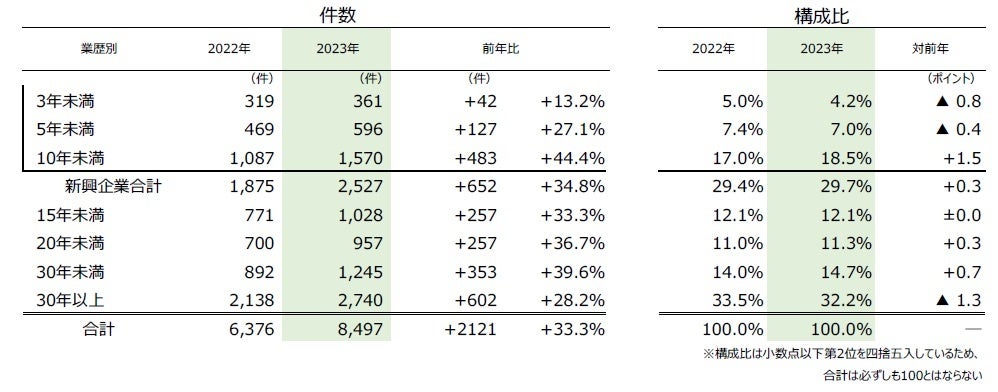 業歴「30年以上」が最多 『新興企業』は11年ぶり2500件超え