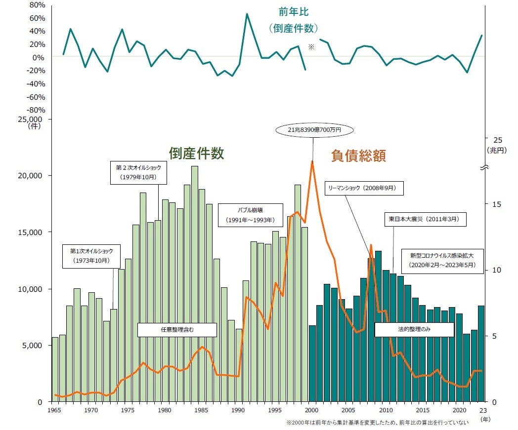 企業倒産は8497件、倒産3割増 増加率はバブル崩壊後で最も高く 15年ぶりに全7業種・全9地域で前年を上回る ― 全国企業倒産集計2023年報