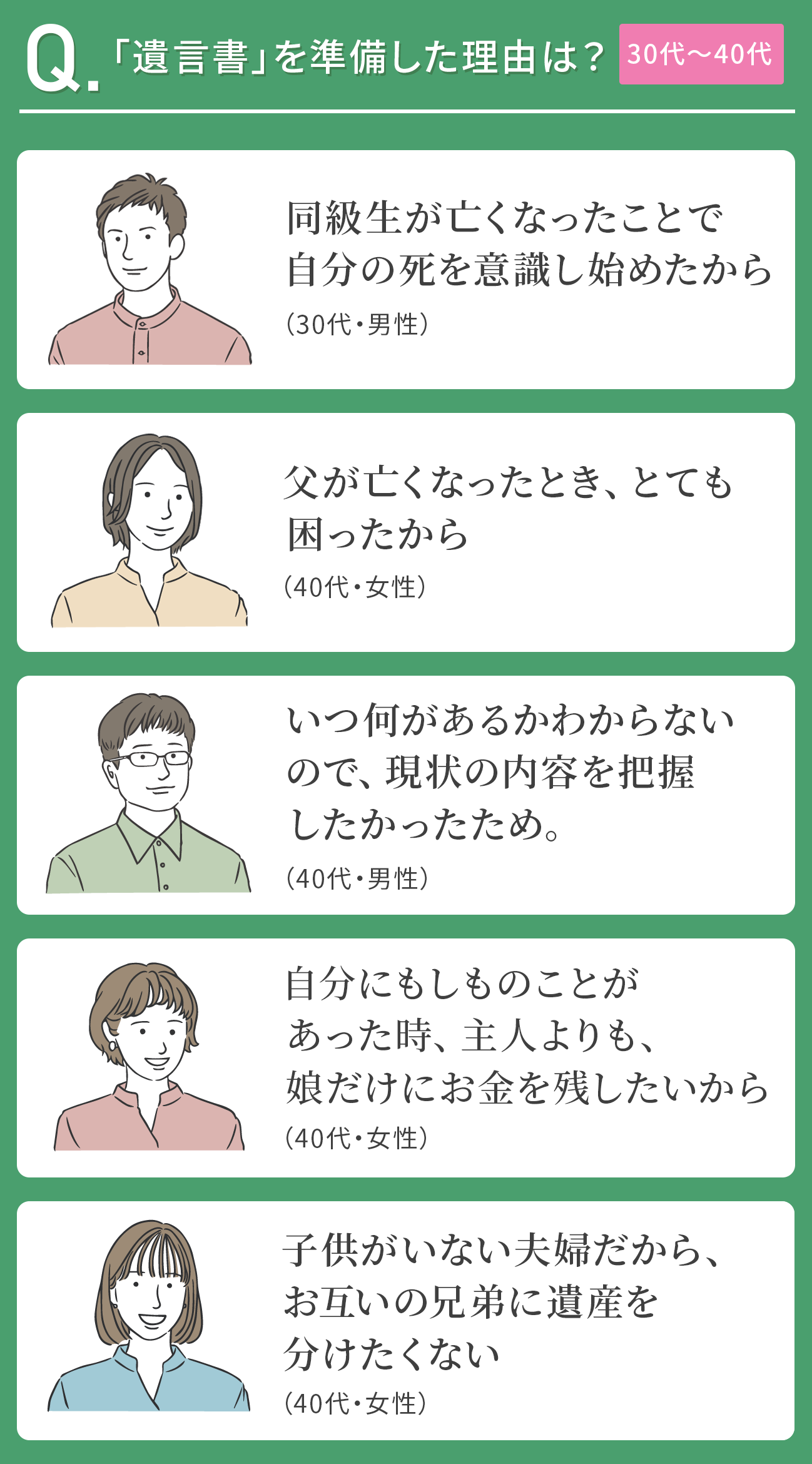 また、「遺言書」を準備した理由を聞いてみたので、紹介します。
