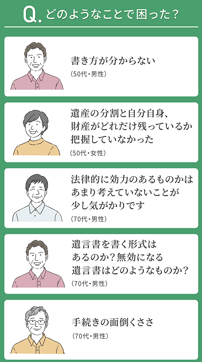 質問5:(1はい)「遺言書」を作成するうえで、困ったことはありましたか?