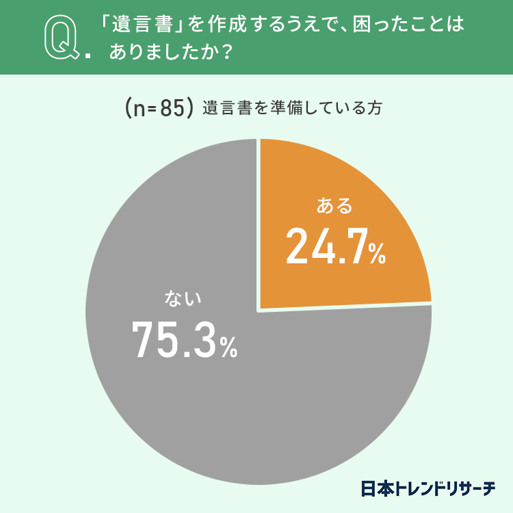 24.7%の方が「遺言書」を作成するうえで、困ったことが「ある」と答えました。
