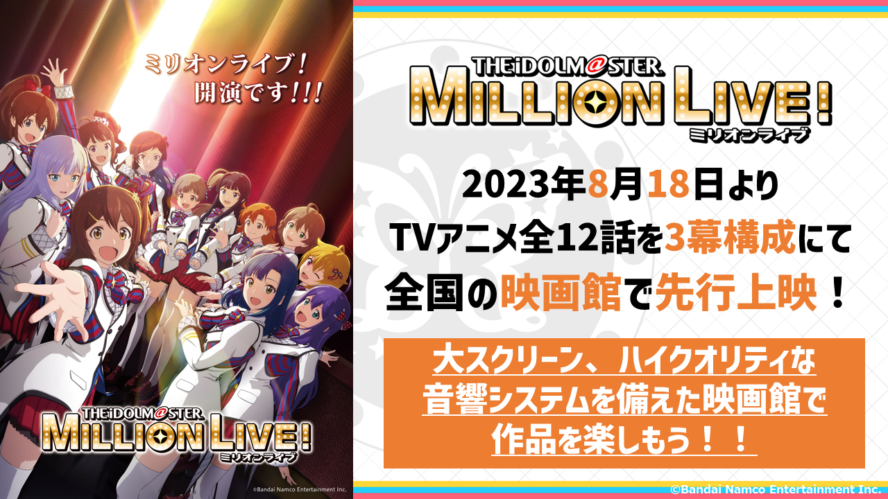 株式会社バンダイナムコエンターテインメントは、アニメ『アイドルマスター ミリオンライブ!』ムビチケ全ラインナップなどの最新情報についてお知らせいたします。