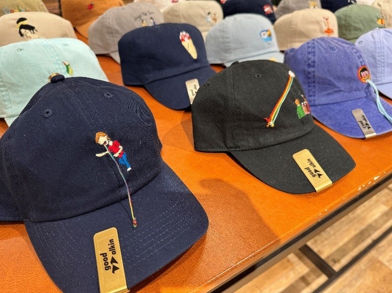 どこかユーモラスで温かみのある個性的なキャップが並びます。