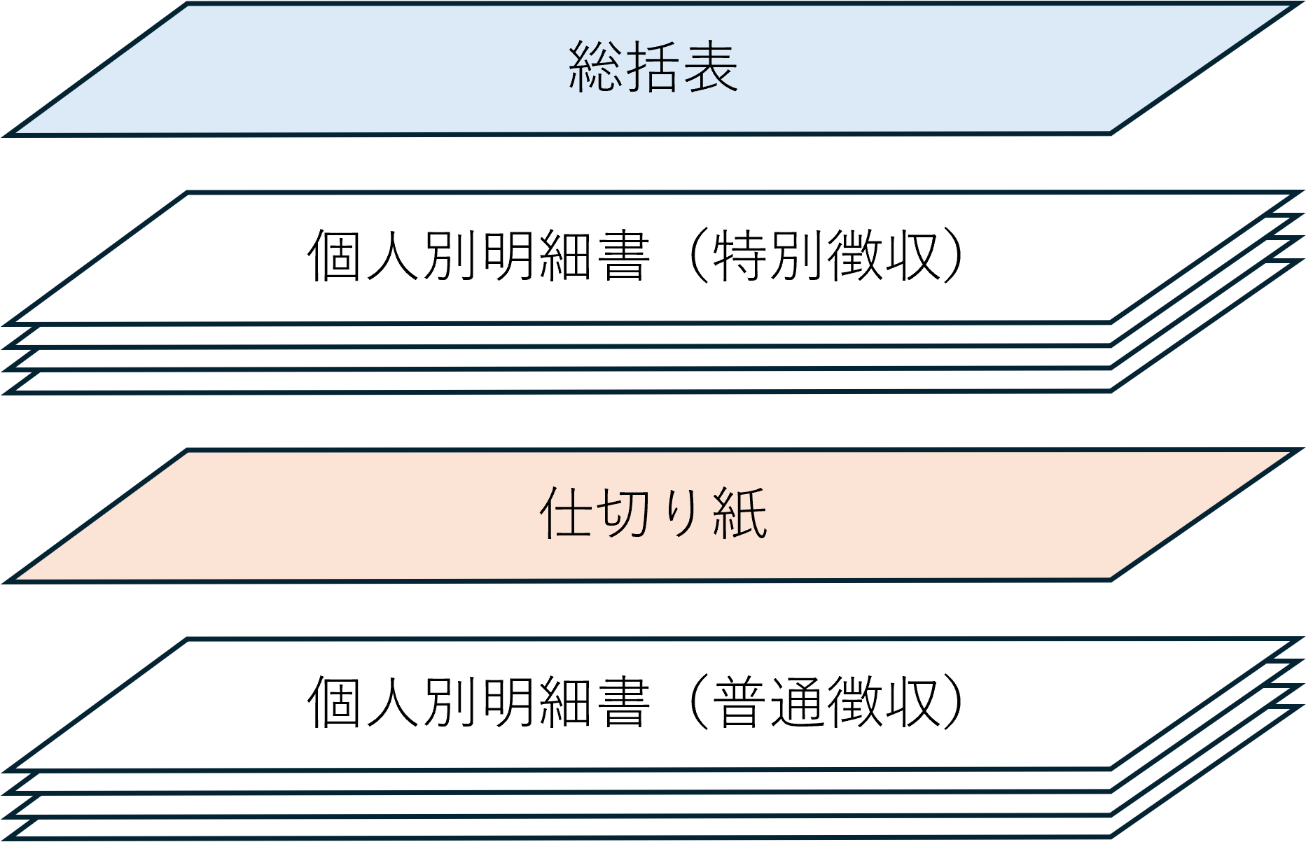 給報のデータ化業務で必要となる主要帳票の一括仕分けのエンジンを刷新しました。これにより、「個人別明細書」「総括表」に加えて「仕切り紙」の自動判定が可能になりました。さらに、「個人別明細書」は「特別徴収」「普通徴収」の仕分けにも対応しています。全体の仕分け精度についても、従来から大幅に改善しました。