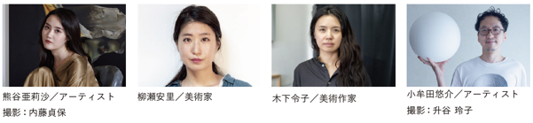 若手アーティスト(9組):大塚朝子(やなぎみわ)、國廣沙織(公募)、澤田光琉(池田光弘)、須崎喜也(公募)、谷平博(伊庭靖子)、村山悟郎(池上高志)、八島良子(Yotta)、山西杏奈(公募)、Rubi(椿昇)