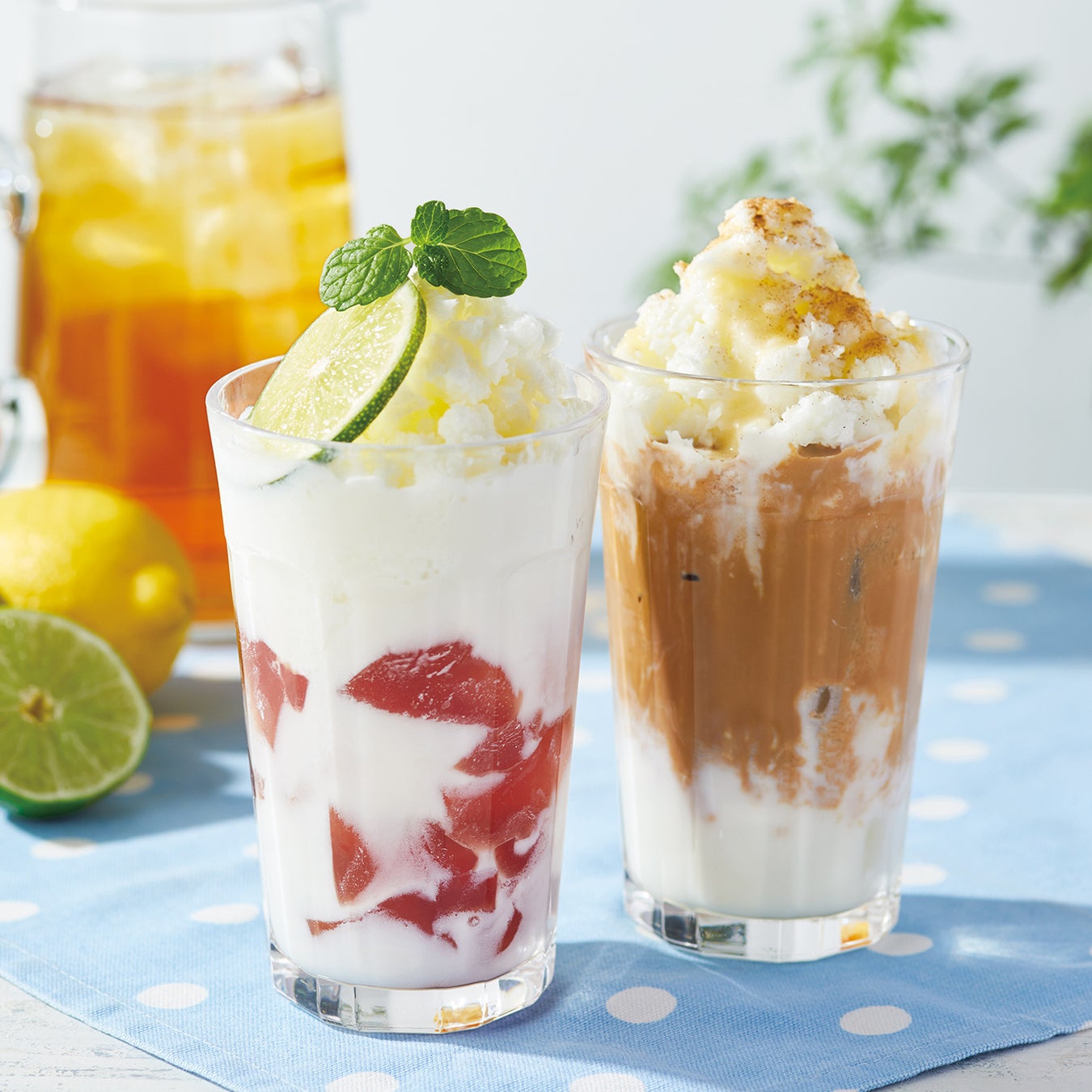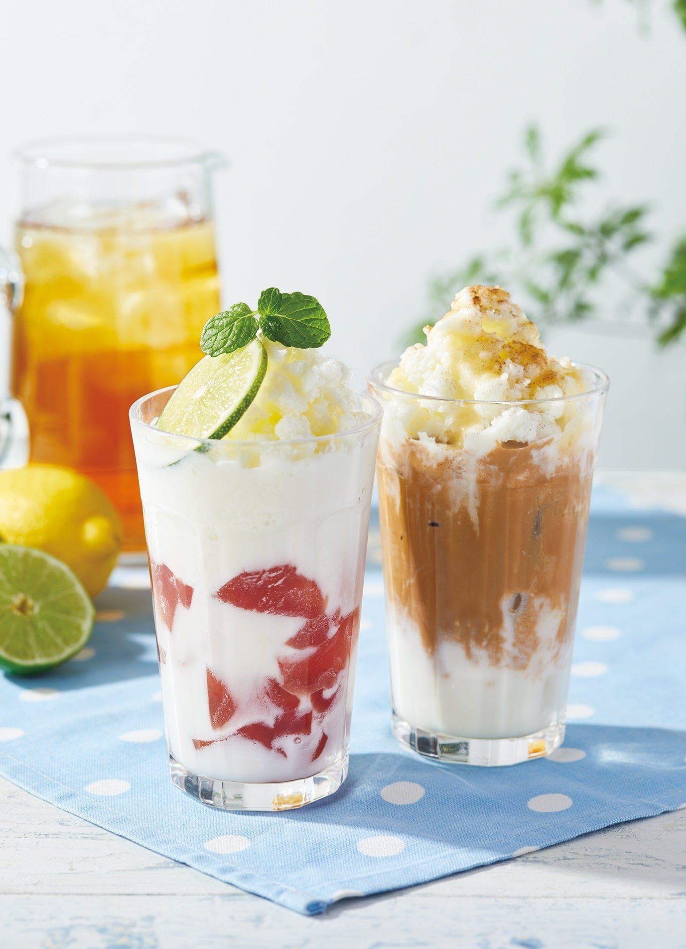 シャルドネの香りをイメージした夏人気No.1のアイスティー“シャルドネダージリン”を使った「カルピス®のシャーベット&シャルドネティーゼリー」がおすすめです。“シャルドネ”のフルーティーな香りと、プルっとしたゼリーの食感がアクセントになって、最後までさっぱりと楽しめます。
