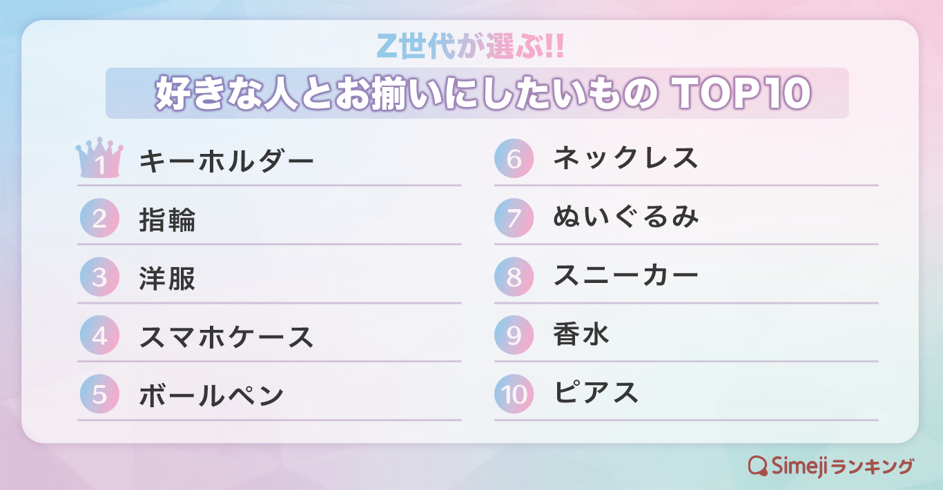 【Simejiランキング】Z世代が選ぶ!!「好きな人とお揃いにしたいものTOP10」