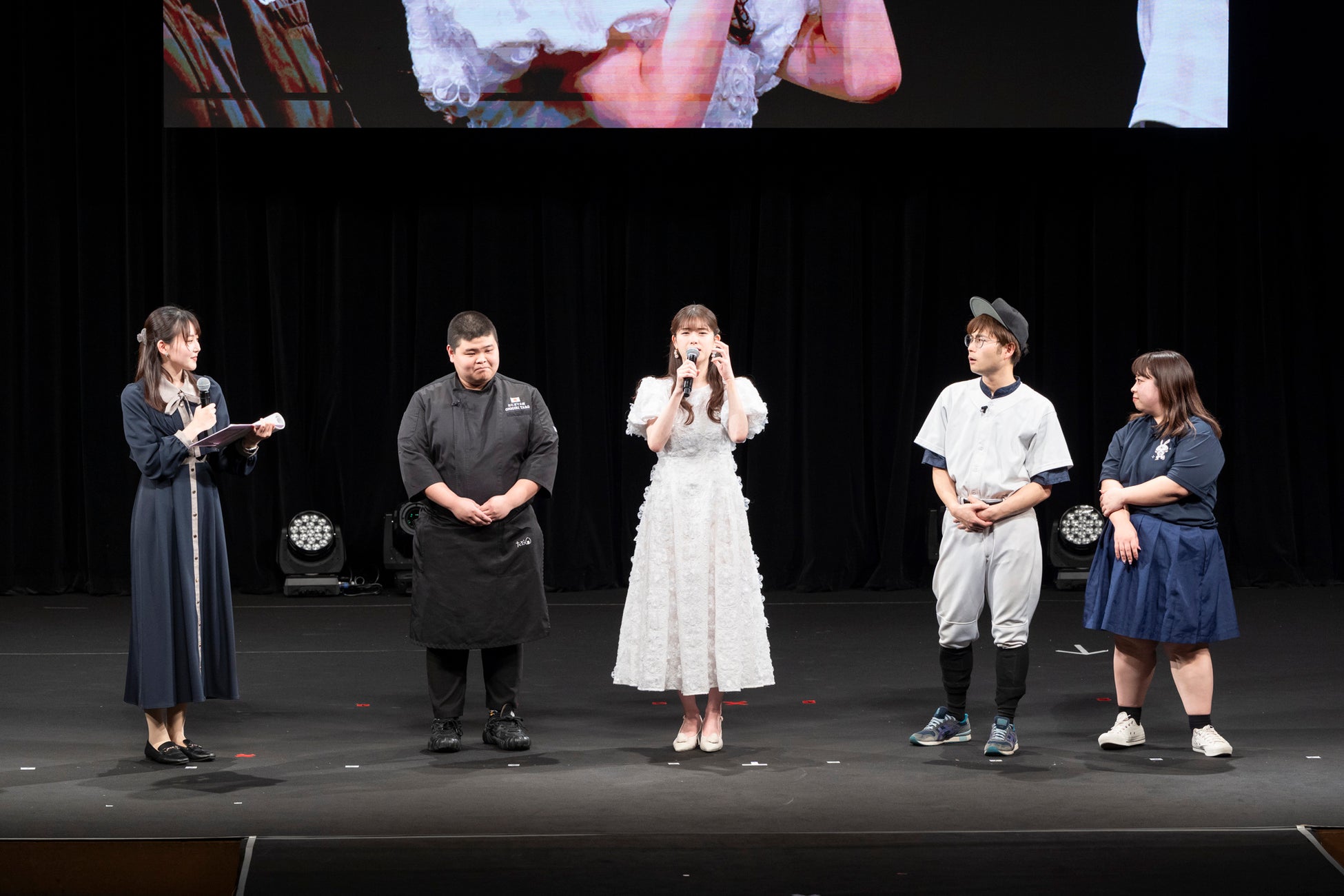 「ネオ農業」をポイントとしたスタイリングをテーマに小物使いをアレンジし、農作業アイテムとファッション性を融合した衣装について、ひかりんちょは「農作業服をこんなにおしゃれにアレンジできるんだという驚きと、このテーマを学生さんたちが考案したことにとても驚きました。」入江美沙希は「足元の農作業をイメージさせるブーツに片足だけパンツを見せているスタイリングと、パンツにもグリーンが入っていて自然を彷彿とさせる組み合わせでテーマにピッタリ!」とファッションについて感想を述べました。また、御殿場の特産物について、なっちーは「卵やハム、ソーセージが美味しいと聞いてます!」と語り、村瀬紗英は「学生さんの地域に対する情熱とチャレンジ精神が素晴らしいと思いました。参加できてうれしいです!」と、参加メンバーへの想いを語り、ゆいちゃみは「来場者の皆さんが参加できる楽しい企画もあるそうなので、引き続きお楽しみください!」と来場者へメッセージを送りファッションショーを締めくくりました。