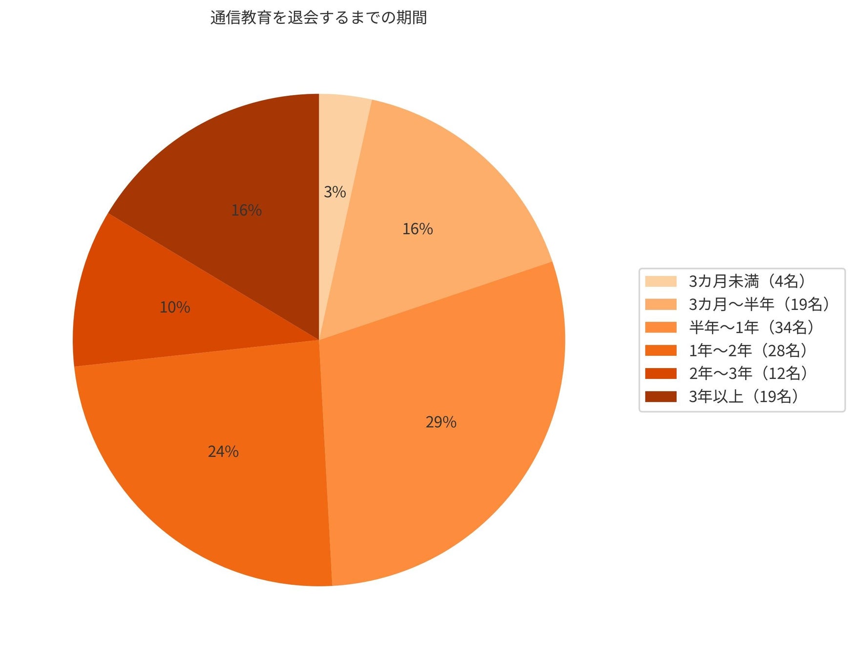 今回アンケートに参加した方の約50%は1年以内に通信教育を退会していることがわかりました。