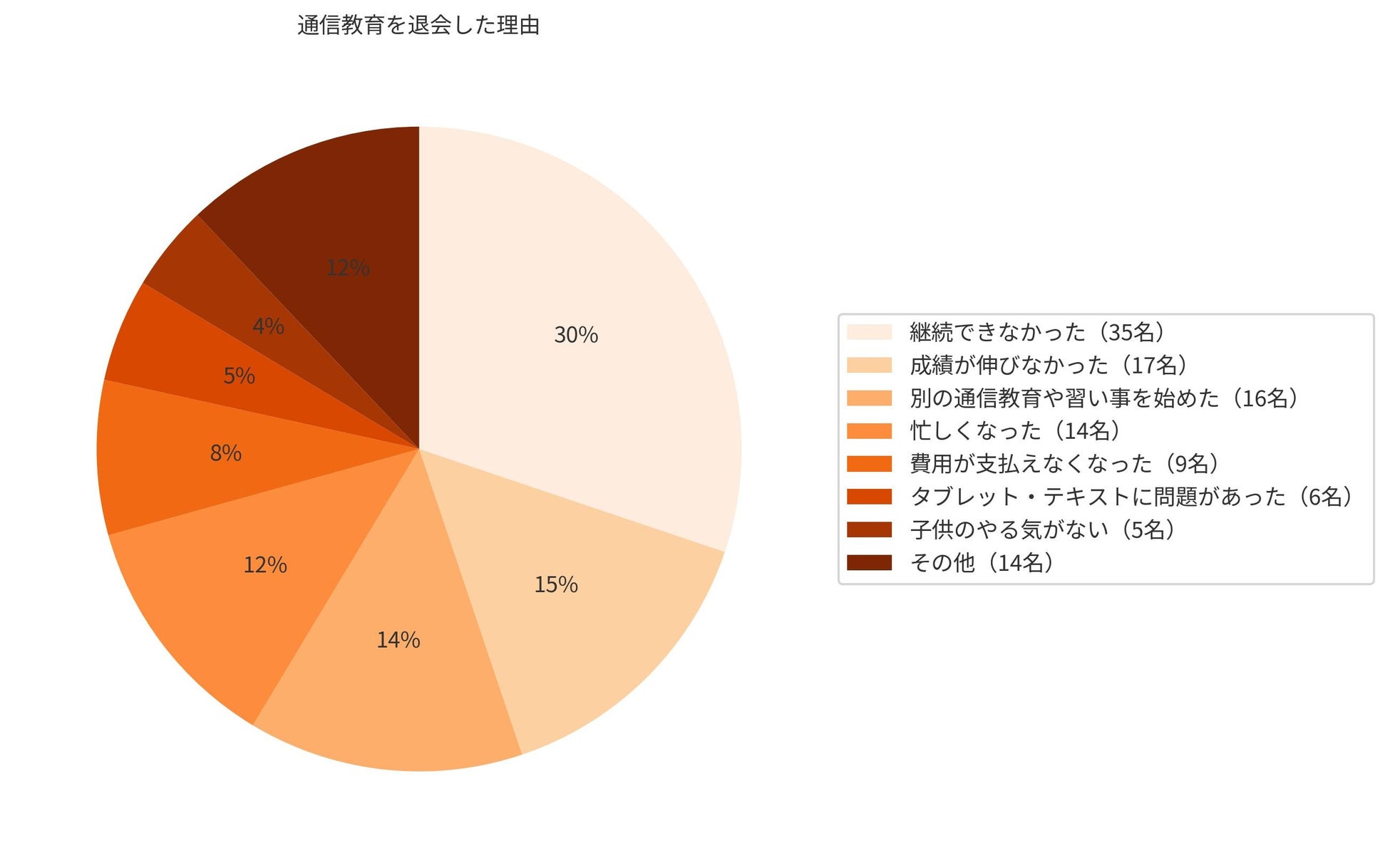 通信教育を退会した理由として、「子どもが継続できなかった」が多い結果となりました。