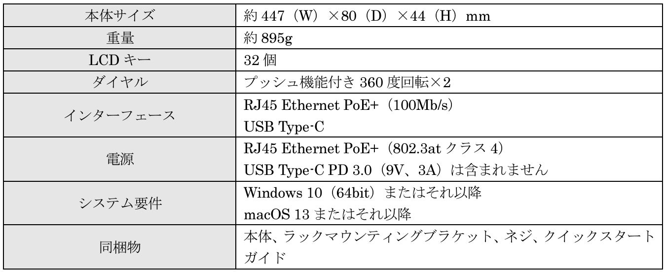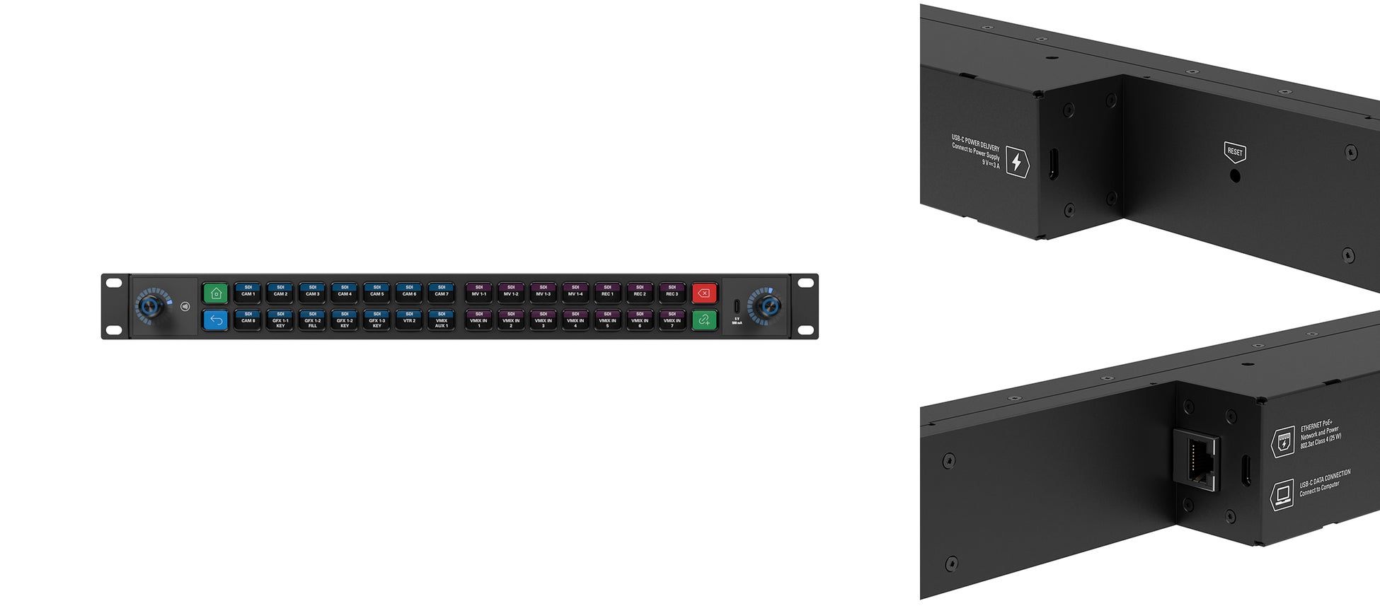 「Stream Deck Studio」は、プロフェッショナルブロードキャストソフトウエアのパイオニアであるBitfocus(ビットフォーカス)との共同開発によって誕生し、放送業界での複雑なワークフローを効率化するために設計されたコントロールサーフェスです。インターフェースは、放送業界の考え方に沿ったソフトウエア「Companion(コンパニオン)」をベースとして「Stream Deck Studio」のために開発された「Buttons(ボタンズ)」から完全にカスタマイズできるため、複雑な配線からも解放され、レイアウトやナビゲーションを高速かつ直感的にコントロールできます。また、「Buttons」は、放送業界のあらゆるハードウエアやソフトウエアと互換性があり、IPおよびSDI伝送が可能です。そして本体は、プロフェッショナルとしては標準的な19インチのラックに設置できる形状のため、これまでの作業環境に簡単に導入できます。ワークフローに合わせて幅広いカスタマイズが可能な32個のLCD(Liquid Crystal Display、液晶ディスプレイ)キーは、あらゆる明るさの環境下でも素早く状況を認識できるよう、アイコンやテキストでキーディスプレイをカスタマイズできます。また、2つのダイヤルはリアルタイムのRGBフィードバックにより、スムーズに正確な設定調整が可能です。USB Type-Cポートには、従来の「Stream Deck」の各モデルを接続し、コントロール機能を拡張することも可能です。さらに、NFC認証機能を搭載しており、セキュアな環境ながらも、素早くスキャンするだけで、個々のユーザーに割り当てられたアクセスが可能です。