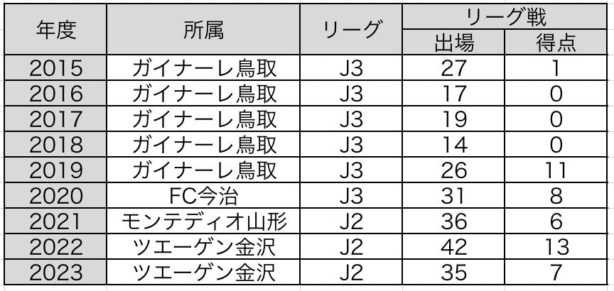 長洲SC - 大阪産業大附属高 - ガイナーレ鳥取 - FC今治 - モンテディオ山形 - ツエーゲン金沢