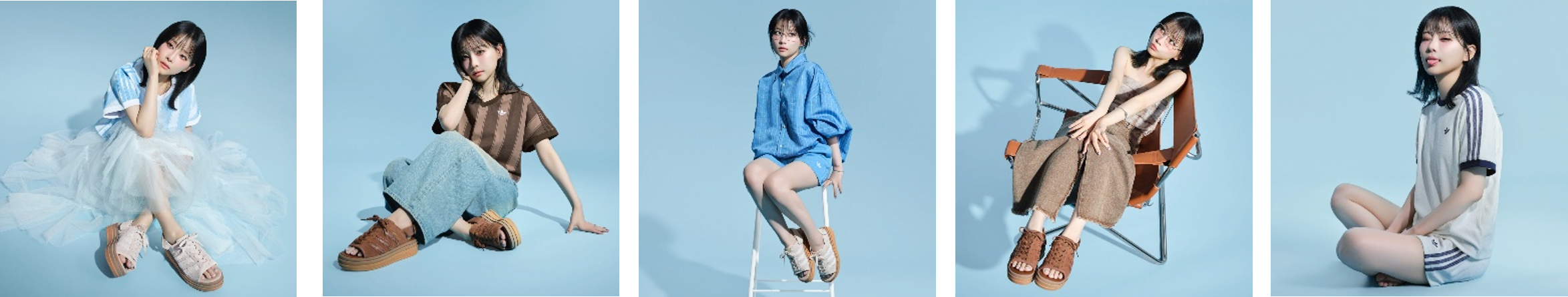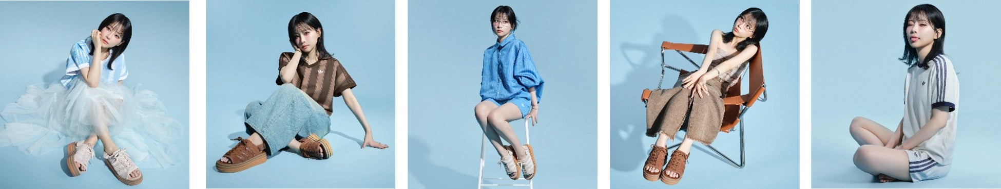 本コレクションは、快適な着用感とリラックスしたシルエットによる動きやすさが魅力で、暑い季節でもストレスなく着用できる仕様となっています。足元には厚底の「GAZELLE BOLD SANDAL」を合わせることで、程よいボリュームと安定感をプラスし、全体のバランスを引き上げます。また、本キャンペーンでは、重盛さと美さんが髪を切りイメージをアップデート。その変化に合わせたスタイリングを通じて、「夏の自分にフィットするスタイル」を表現しています。ビジュアルや動画では、「GAZELLE BOLD SANDAL」のアニマル革風エンボス加工や厚底によるバランス感、「D JERSEY / D SHORTS」のデニムライクな素材とリラックスシルエットに短め丈のトレンド感、「TERRYシリーズ」のソフトな肌触りと快適性といった各アイテムの特徴を活かしながら、軽やかさや抜け感、ストリートの要素をバランスよく取り入れたスタイルを展開しています。