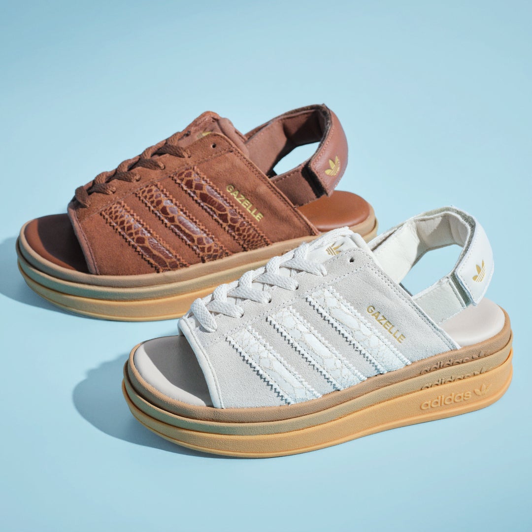 人気厚底スニーカー「GAZELLE BOLD」をサンダルにアップデート。ABCマート限定モデルは、スウェード素材をベースにアッパーのスリーストライプスにアニマル革風のエンボスを施したデザイン。また、スタイルアップを叶えるボリューム感と、軽快な履き心地を両立し、日常のスタイリングに新しいバランスをもたらします。
